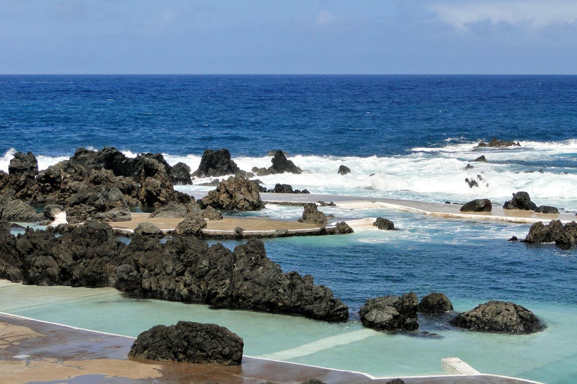 On the northwestern tip of the island, the town of Porto Moniz is famous for its unique natural swimming pools, carved by ancient volcanic lava flows. These natural basins are naturally filled with crystal-clear seawater, but are protected from the harsh Atlantic waves by the rocky barrier.