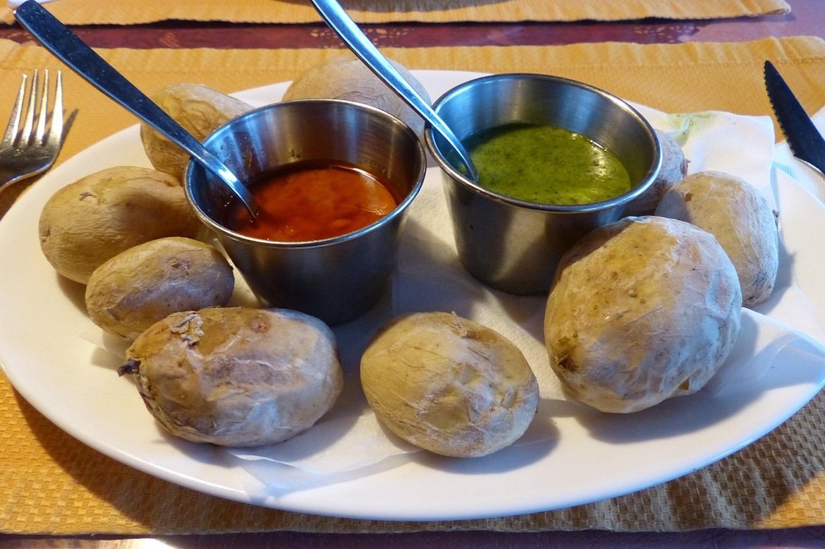 The quintessential Canarian dish is Papas Arrugadas (wrinkly potatoes), which are small local potatoes boiled in very salty water until their skins shrivel and are covered in a fine salt crust. They are always served with two types of Mojo sauce: Mojo Rojo (spicy red) and Mojo Verde (coriander or parsley-based). This simple but addictive dish is found in every restaurant on the island and is a staple of the local diet. It perfectly represents the rustic, flavor-focused nature of Canarian cuisine.